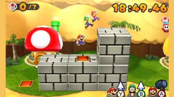 The gameplay is similar to the Mario & Luigi series with some elements from the Paper Mario series. Your goal is to lead the trio to reach the Bowser castle and save two Princess Peach.