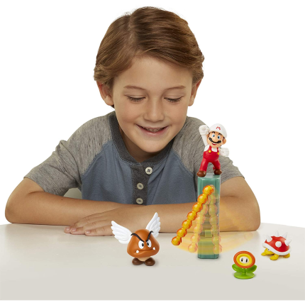 If you like Mario's lava scene, this set is for you. This set contains Fire Mario, Spiny, para Goomba, Mechanical Spinning Fireballs, Block, and Fire Flower. Kids can recreate the excitement of the Super Mario video game with this amazing set. The scenes and characters are rich. Mario can use the fire flower to power up, and the fireballs spin around the tower just like in the game. Of course, it can also be used with other playsets to create a Mario world full of your own ideas. In addition to playing by yourself, it is also suitable as a gift for kids who like adventure and challenges. If your kids are huge Super Mario fans, this amazing set is sure to please them! It brings game scenes from video games to life and gives kids the chance to go on adventures with their favorite characters!
