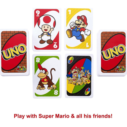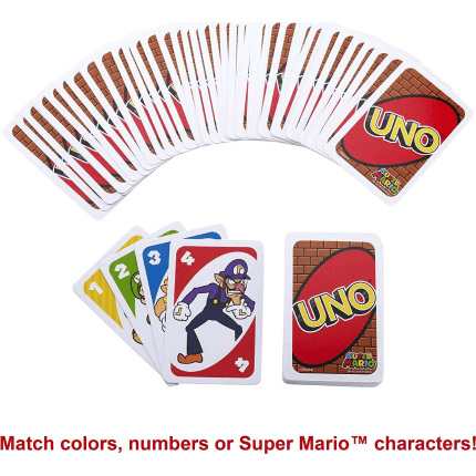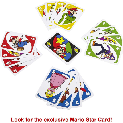 This deck plays like the classic UNO card game – matching colors and numbers from players' hands to the discard pile, but with Super Mario characters on each card. The 112-card deck includes a Super Mario Super Star rule unique to this game. The player that draws the Super Star card becomes practically invincible! When players are down to one card, they must yell "UNO!" For Super Mario collectors and fans, this deck is a keeper. Enjoy the game with groups large and small, 2-10 players! Kids ages 7 years and older love playing UNO and they'll love UNO Super Mario even more! It is a casual game suitable for spending time with family and friends. I recommend every family who loves Mario to buy it!